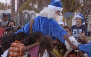 Above: WestJet's latest video takes a blue-costumed Santa to the Dominican Republic