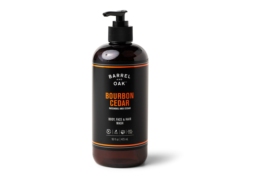 Let’s face it, life moves quickly and 24 hours often doesn’t feel like enough time. So having one product in the shower to cleanse your self, literally, from head to toe is a great solution. Especially when it works as effectively and smells as good as Barrel and Oak Gentlemen’s Hardware Hair, Face and Body All-in-One Wash in “Bourbon Cedar.”